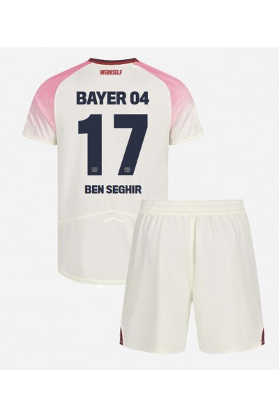 Bayer Leverkusen Eliesse Ben Seghir #17 Jalkapallovaatteet Lasten Vieraspeliasu 2025-26 Lyhythihainen (+ Lyhyet housut)