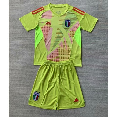 Italia Maalivahti Jalkapallovaatteet Lasten Kotipeliasu EM-Kisat 2024 Lyhythihainen (+ Lyhyet housut)