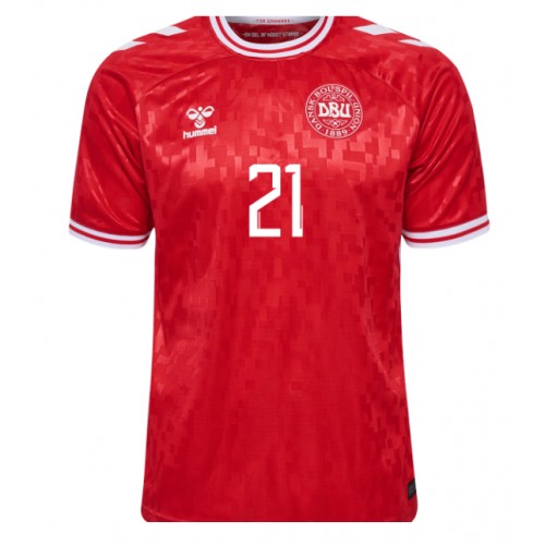 Tanska Morten Hjulmand #21 Jalkapallovaatteet Kotipaita EM-Kisat 2024 Lyhythihainen